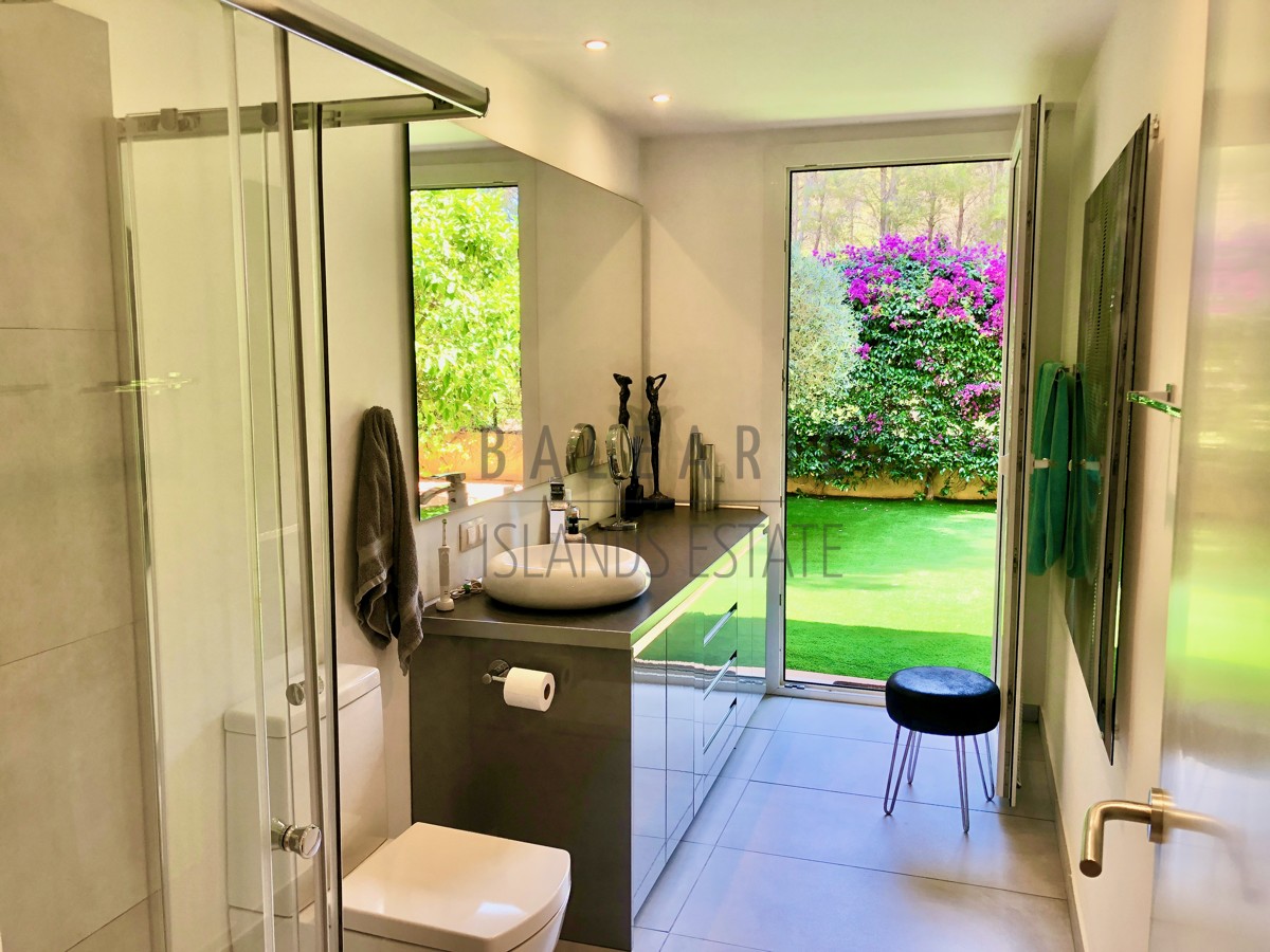 The bedrooms are located on the ground floor of this attractive house, each of which offers direct access to a terrace and the mediterranean garden that cannot be looked into. A central bathroom with shower also has direct access to the terraces and garden area. The spacious master bedroom is also equipped with a loft-style en suite bathroom and a covered terrace.
