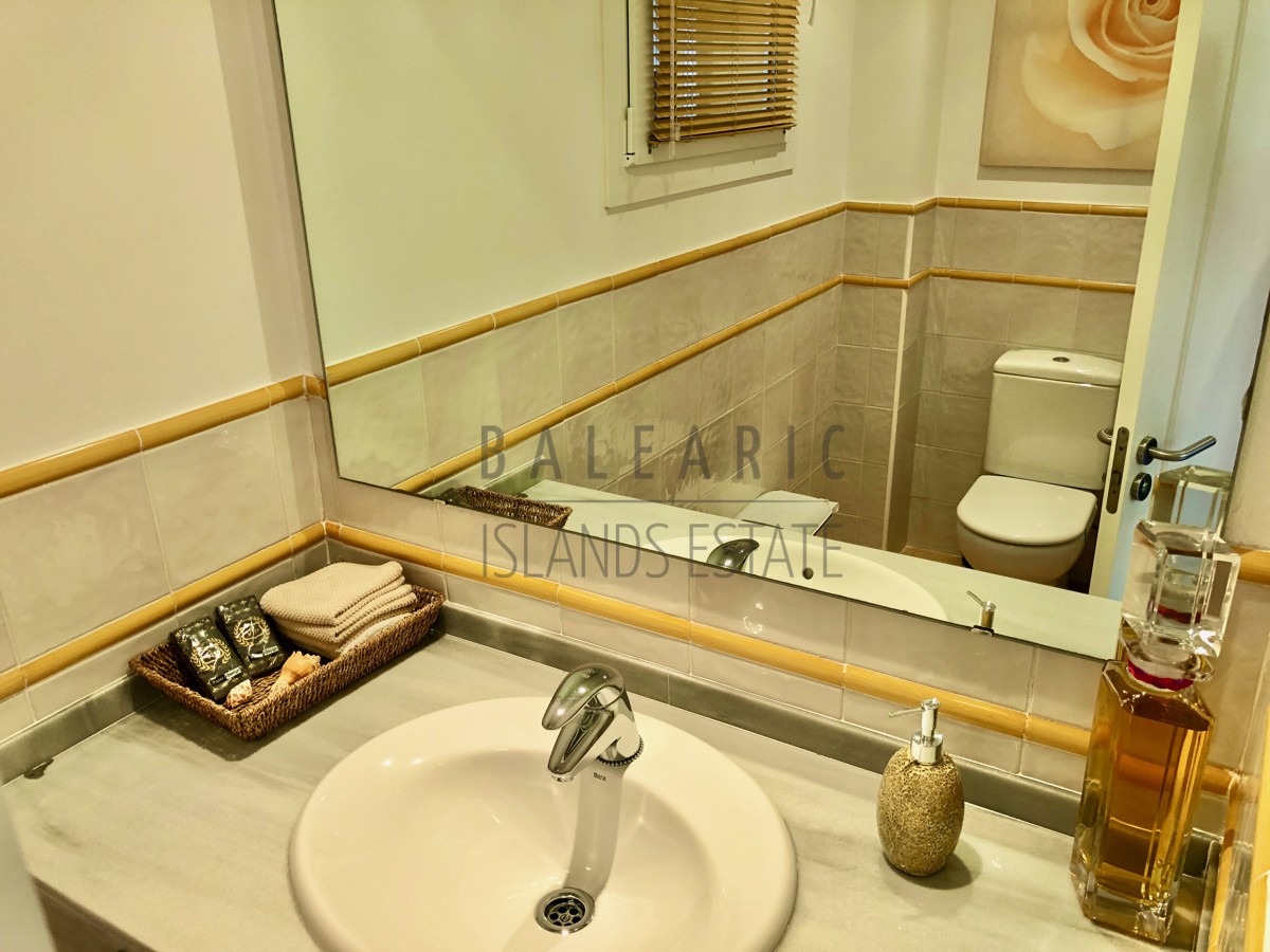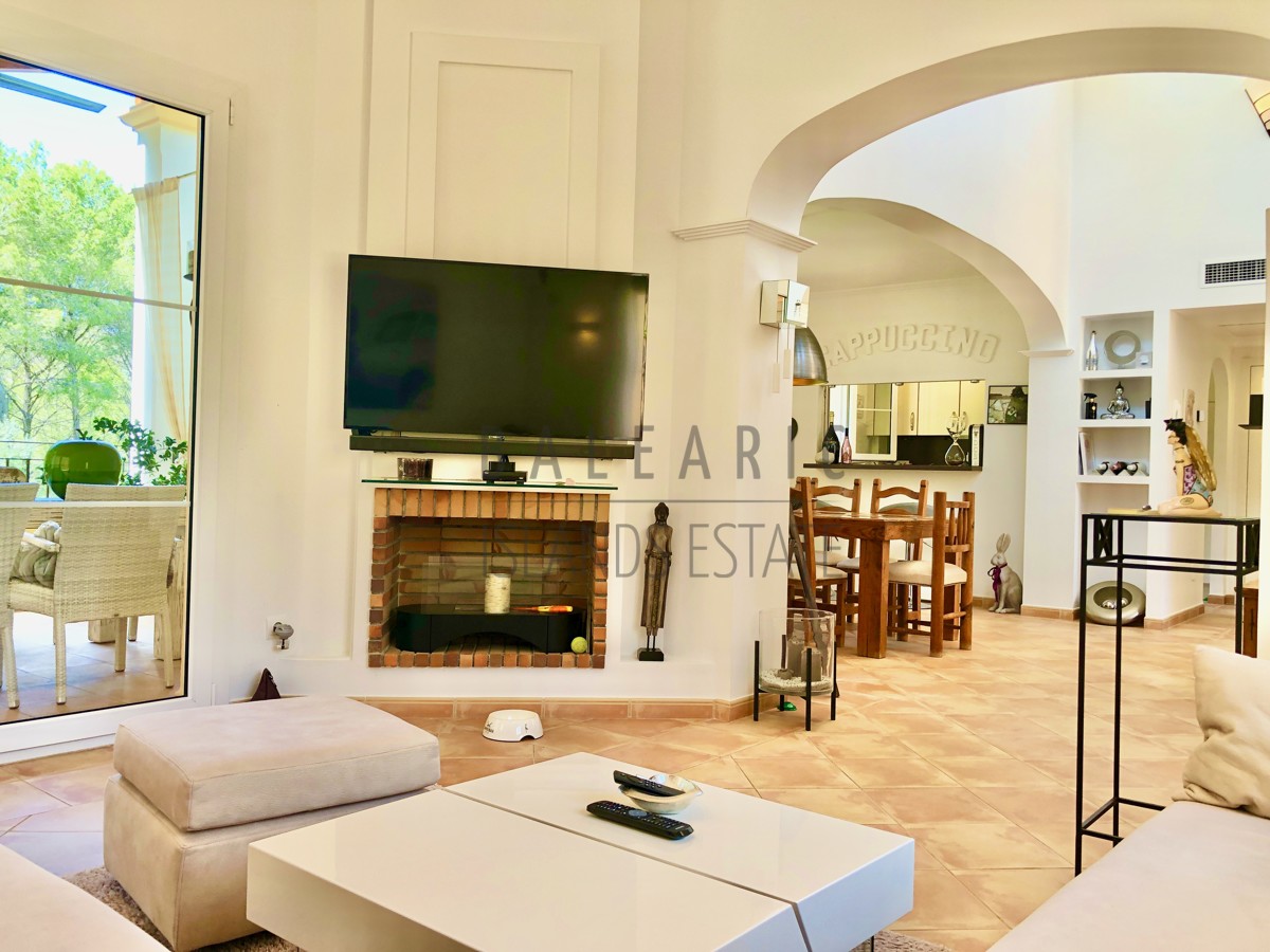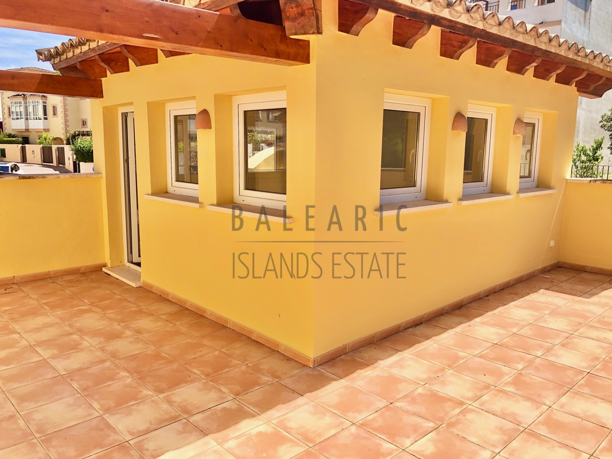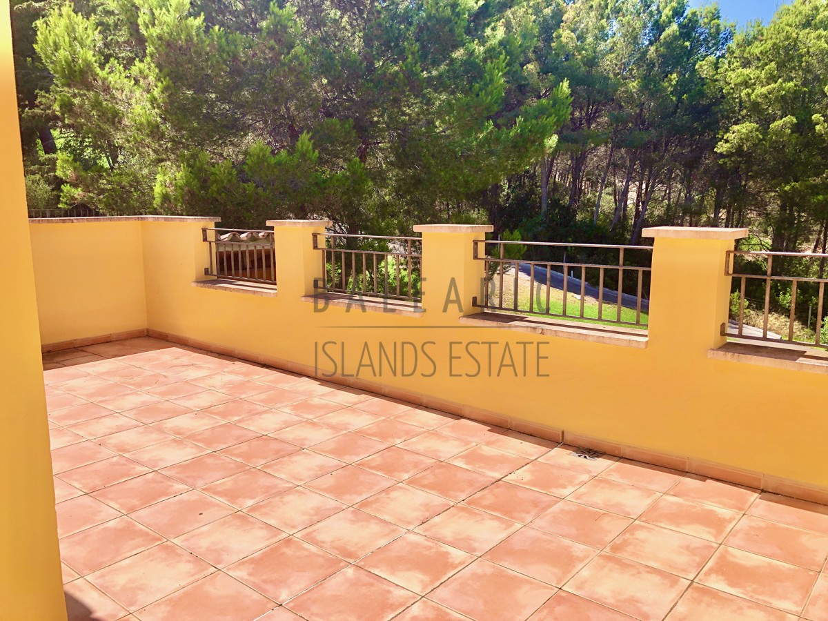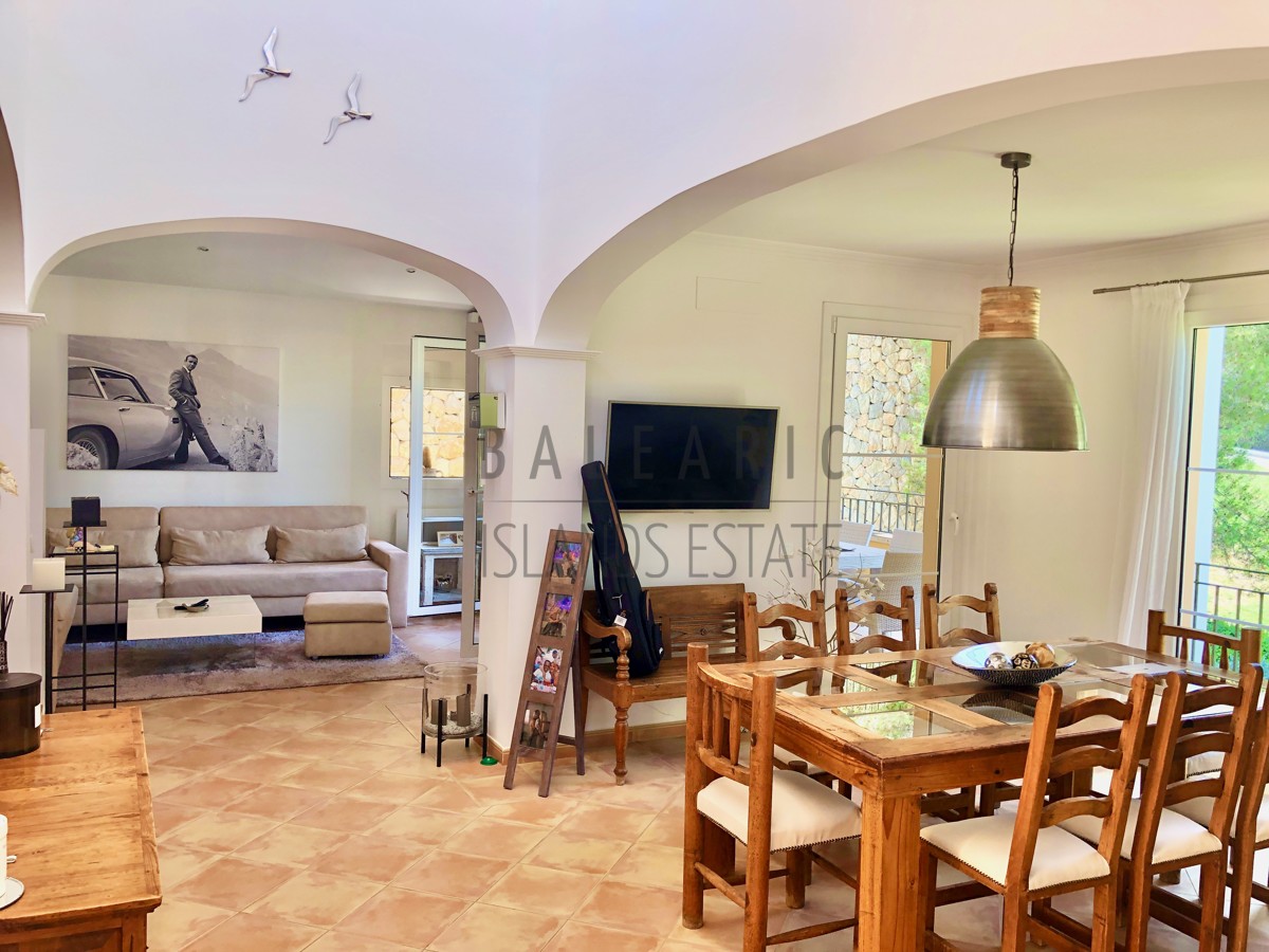 Dieses mediterrane und idyllisch gelegene Eck- Reihen Endhaus befindet sich in einer gepflegten Wohnanlage aus dem Jahr 2007 welche fast vollständig vom den Greens des Golfclubs „Golf de Andratx“ umgeben ist.. Erst 2022 renoviert bietet diese Haus auf 208 qm reiner Wohnfläche insgesamt 3 Schlafzimmer und zwei Bäder, davon eines en Suite sowie ein separates Gäste WC.